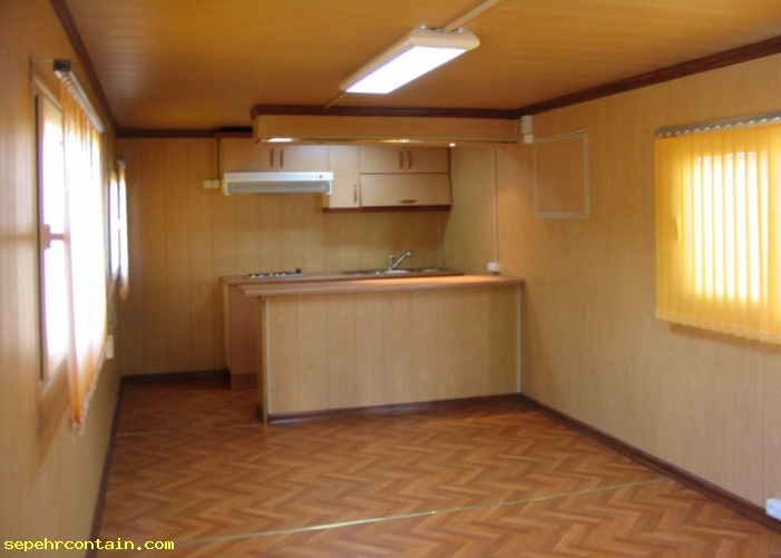 اما اگر فضا به مقدار کافی برای اختصاص دادن به این بخش وجود نداشته باشد آبدارخانه به صورت اپن بوده و به لحاظ ابعاد کوچکتر میباشد اما تمام امکانات لازم یک آبدارخانه مثل سینک، گاز، کابینت و شیر آب را دارا میباشد این نوع کانکسها با کاربری نگهبانی و سرایداری نیز قابل استفاده میباشد.